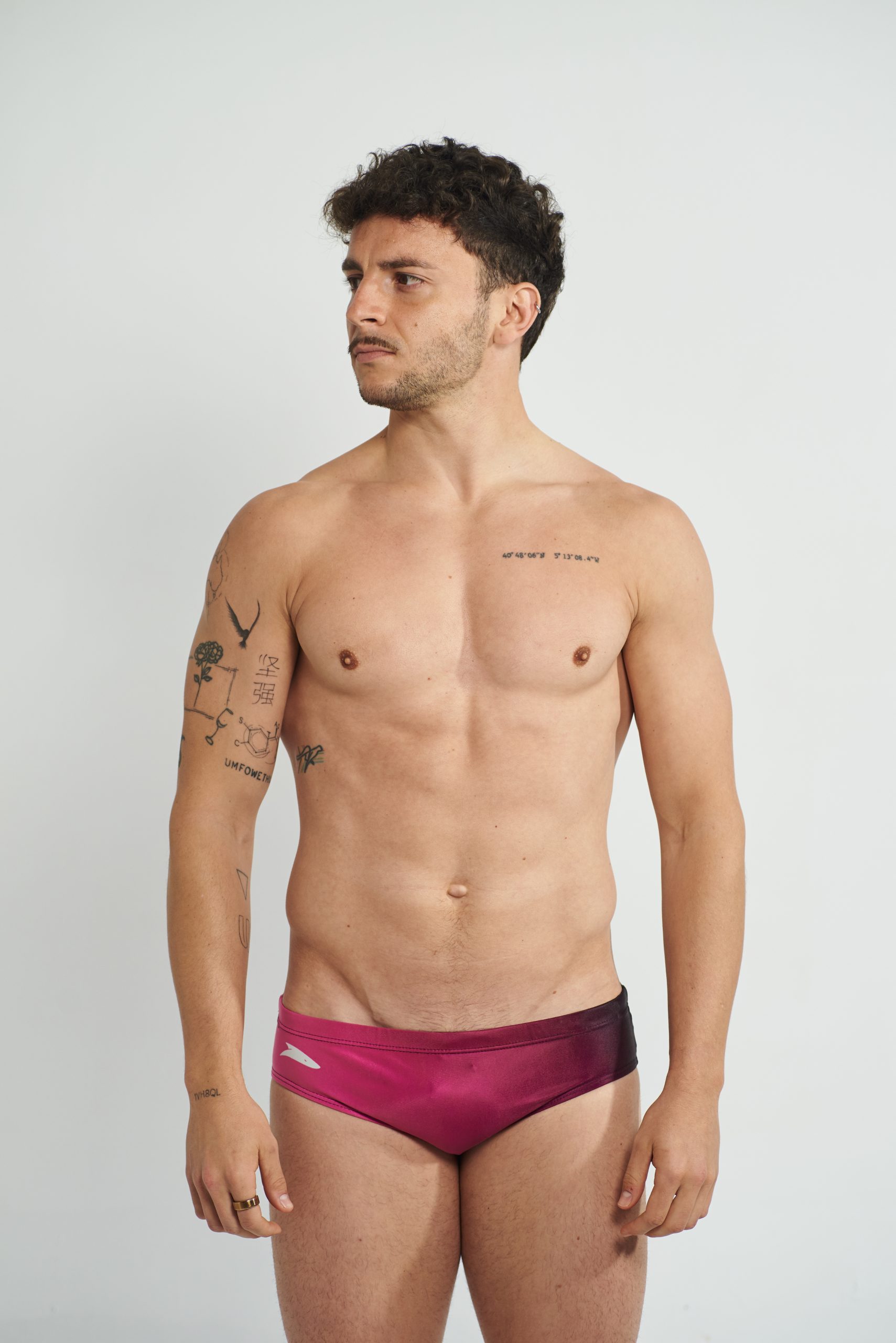 Bañador de hombre Slip Degradado Rosa. Diseñado con una estética vibrante que captura la esencia de la naturaleza y la energía de los océanos. Una pieza técnica creada por y para nadadores que buscan estilo y máxima hidrodinámica. 55% poliéster reciclado de alta calidad + 45% PBT. Diseñado por y para nadadores.
