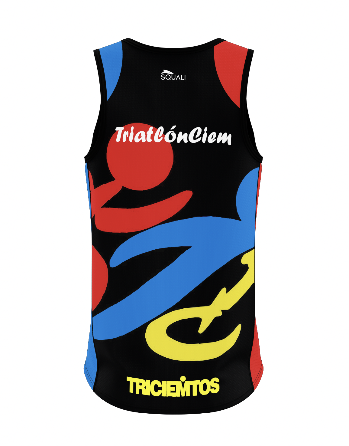 Camiseta sin mangas Colección Exclusiva Triatlón Ciempozuelos. Tejido ultraligero microperforado para la mejor transpiración. Densidad del material 80gr. Tejido especial diseñado para atletismo y deportes de carrera.