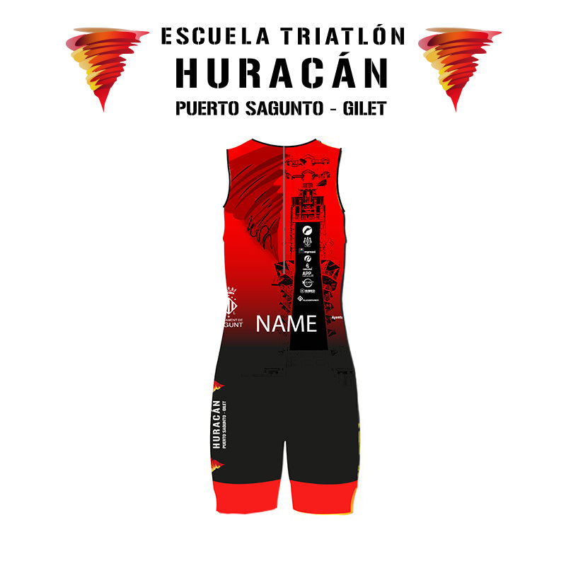 Tritraje Kids Unisex sin Mangas Colección Exclusiva Escuela Triatlón Huracán con cremallera trasera.