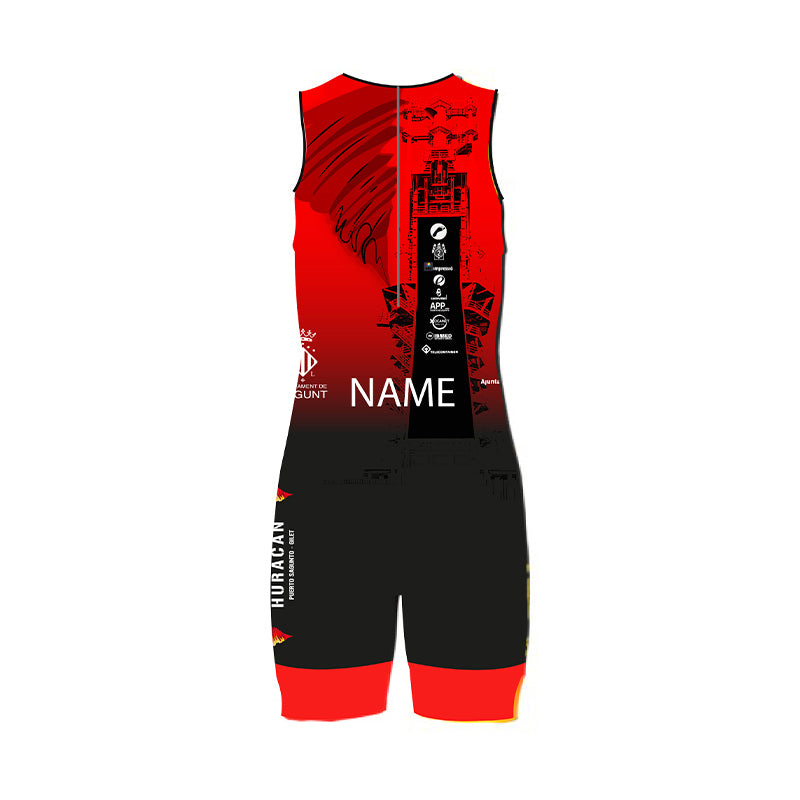 Tritraje Hombre sin Mangas Colección Exclusiva Triatlón Huracán con cremallera trasera.